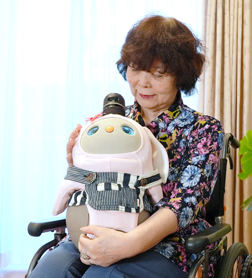 また、障害があり両肘を伸ばせないご利用者が、一生懸命手を伸ばしLOVOTの頭を撫でようとされる姿も見られました。訪問リハビリやデイサービスで行うような週に何度かの訓練よりも、日常、少量頻回の生活動作をする方が能力向上には効果的と言われており、その点でもLOVOTの存在は効果的だと感じました。LOVOTを可愛がりたいという意欲が、日常生活の動作の能力向上につながるのではないでしょうか。
